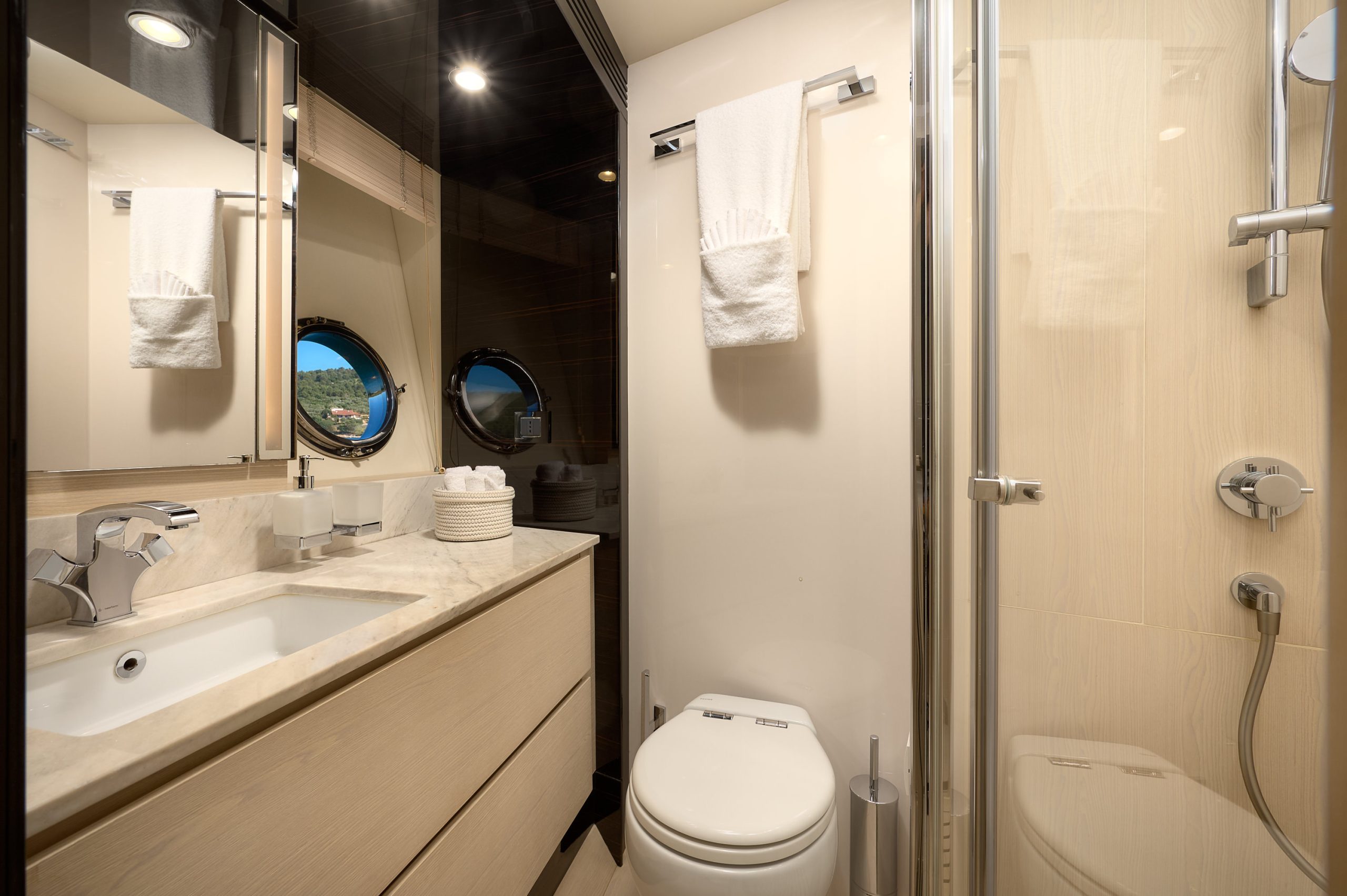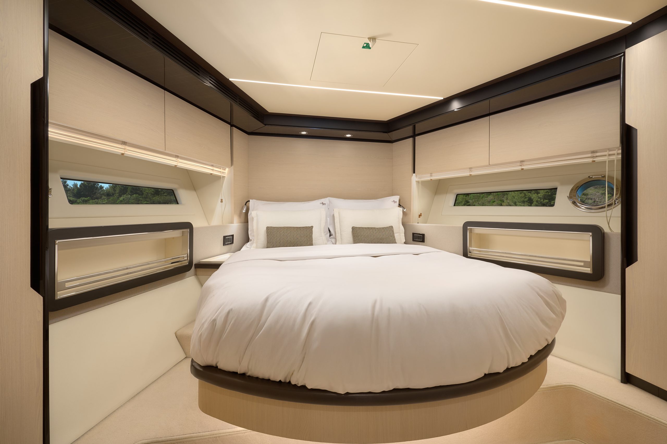 Azimut 72 Fly Alyss offers four comfortable guest cabins, including a spacious master suite, VIP cabin, and two additional guest cabins, all designed to provide privacy and relaxation. Each cabin is thoughtfully arranged to maximize comfort during overnight stays.