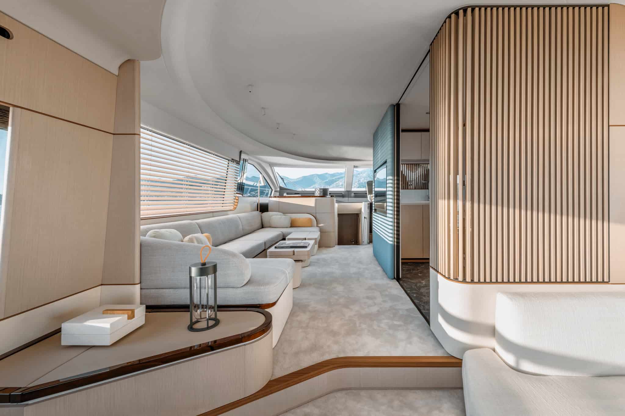 Inside, the yacht is filled with natural light thanks to large windows and an open plan salon. Soft neutral tones, high quality finishes, and thoughtful details create a warm and inviting atmosphere that feels both modern and timeless.
