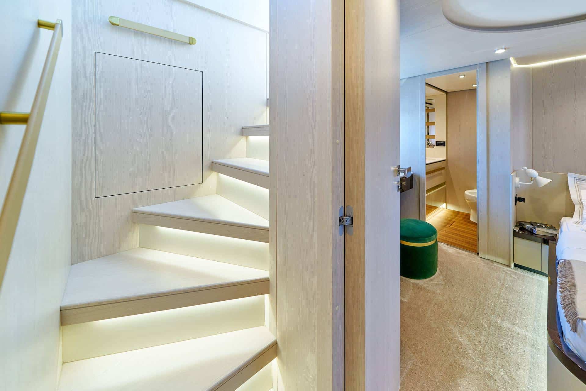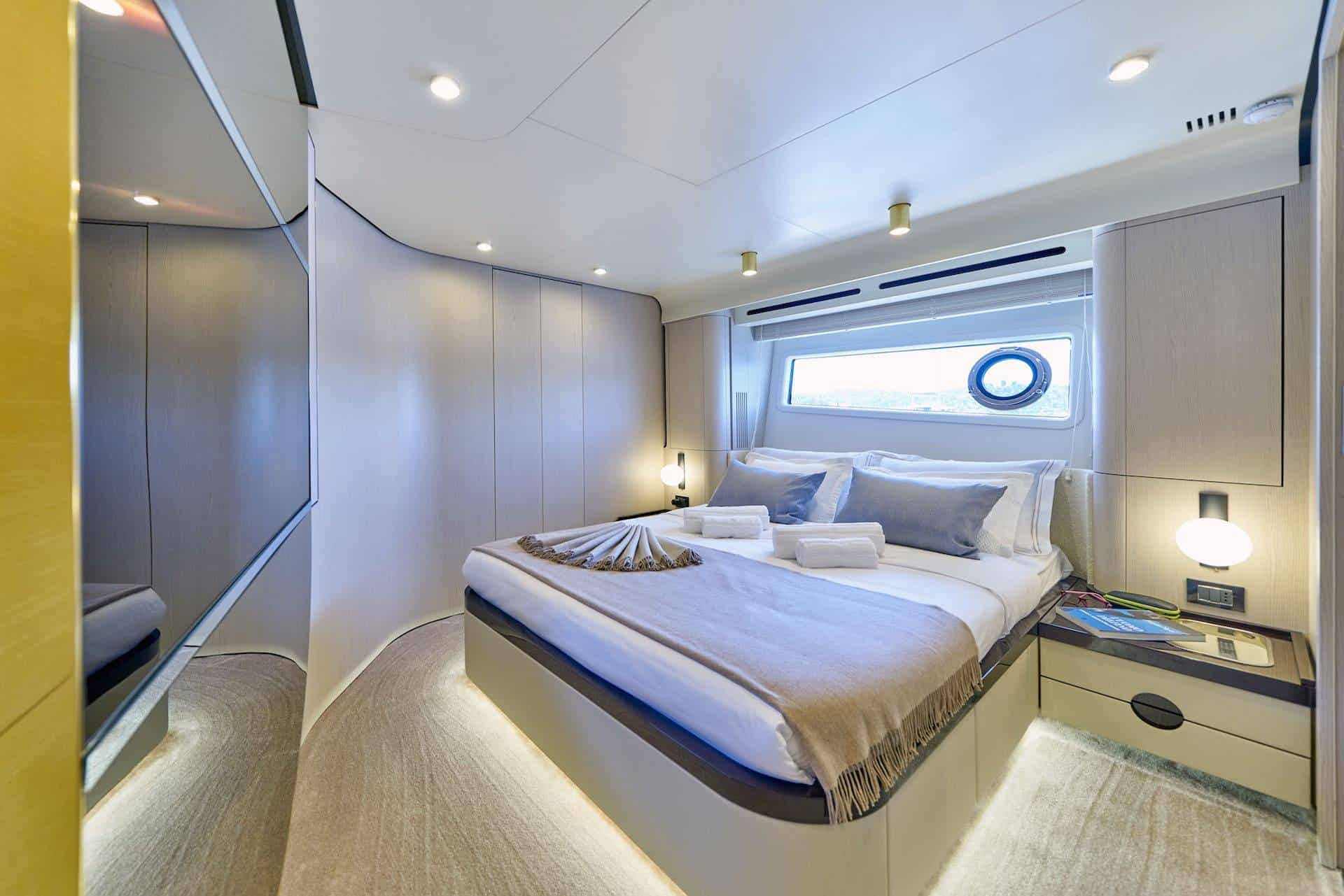 The Fly 78 Viva combines contemporary design with functional comfort, making it an excellent choice for relaxed coastal cruising. The yacht features four well appointed guest cabins, including a spacious master suite, all designed to provide privacy and comfort for overnight stays.